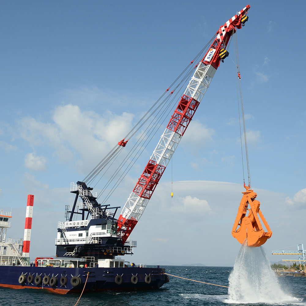 輸出入がスムーズに行われるような港の整備工事や、災害復興の現場でSKKのクレーンは使われています。