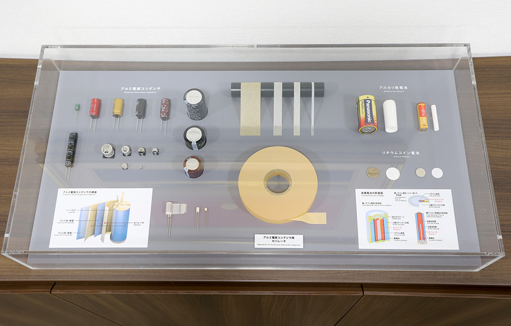 当社は、コンデンサという電子部品や電池などに欠かせないセパレータを紙で開発・製造・販売している会社です。